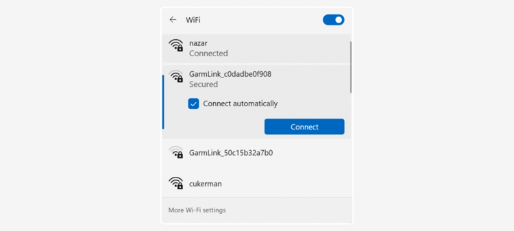 On your device, go to Wi-Fi settings and look for a network named GarmLink_xxxxxxxxxxxx, where xxxxxxxxxxxx is a unique set of characters.