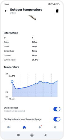 Following the update, the sensor's data will be displayed in the Favorites section on the object's main page.
