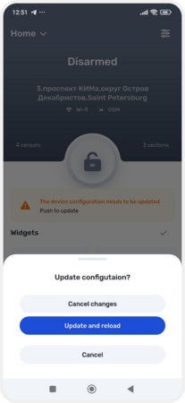 2. A notification stating The device configuration needs to be updated will appear at the top — tap on it