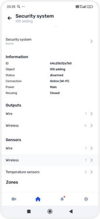 Sensors not assigned to a zone won't trigger alarms upon activation and will display a "No zones" status.