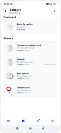 Sensors not linked to a zone will appear in the list but won't trigger alarms. For guidance on creating sections, see here.