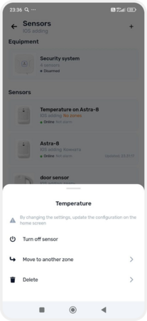 Sensors not assigned to a zone will also appear here. You can assign them to a zone later.