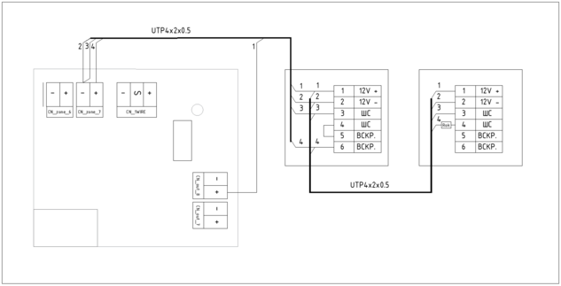 3. Connect the loop's signal wire to the +CN_ZONE terminal
