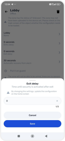 — set an exit delay — time before arming starts after leaving
