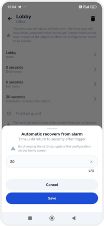 — enable auto-restore — return the zone to armed mode after an alarm