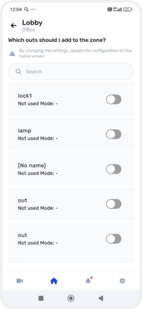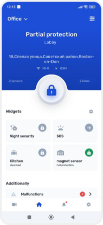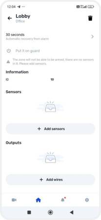 All devices within a zone operate together — the system monitors their state and reacts if something happens. For example, when one of the sensors is triggered, the system determines the type of event (alarm, fire, fault, etc.) and performs the appropriate action: activates a siren, sends a notification, or turns on another device.
