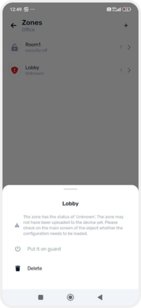 3. Tap Put it an guard — the zone will switch to security mode