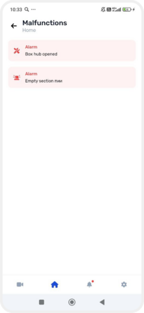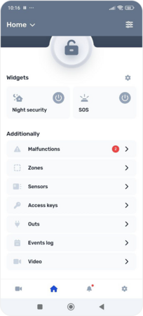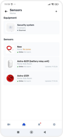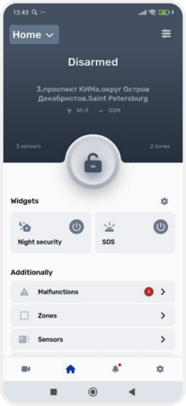 The Malfunctions tab displays all current issues in the system. Here you can see if any device is not working properly — for example, if a sensor has lost connection or a battery is running low.