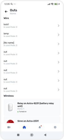 View and configure actuators that respond to alarms or commands (sirens, light signals, electromagnetic locks, relays).