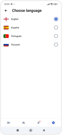 The main screen opens automatically when you tap the “Home” icon in the bottom menu. This is the primary screen, from which you can: